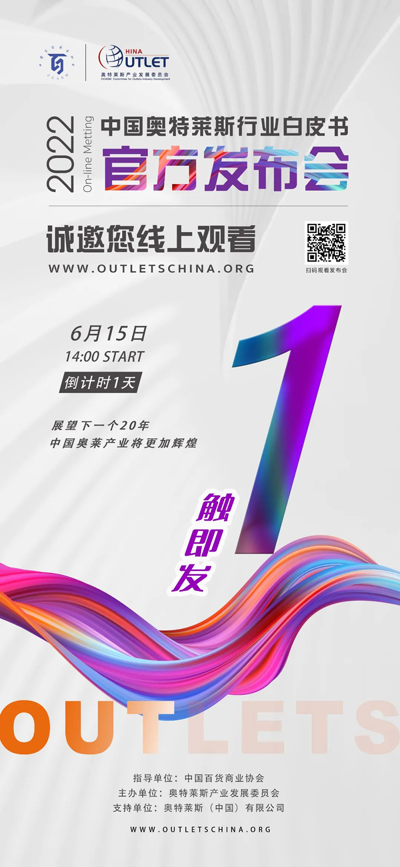2022年6月15日14:00,《2022年中國奧特萊斯行業白皮書》線上發布會即將正式開始,本次發布會,將對國內零售市場及奧萊產業引入中國20年發展的經驗及機遇做出全新解讀。