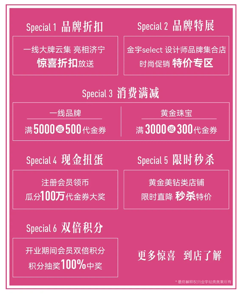 隨著金宇經典奧萊的開業,濟寧國際生活節正式拉開序幕。以回饋濟寧人為目的,制造濟寧人自己的時尚地盤,4.29-5.30盛惠不止狂歡不停,覆蓋五一黃金周,推出大量優惠活動,時尚秀場、live演出、驚喜折扣、雙倍積分、現金扭蛋等,回饋廣大市民朋友!