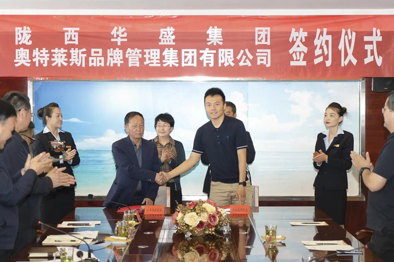 奧特萊斯(中國)業務拓展中心總經理左祺與隴西華盛集團董事長柴彥章代表雙方公司簽署合作協議。