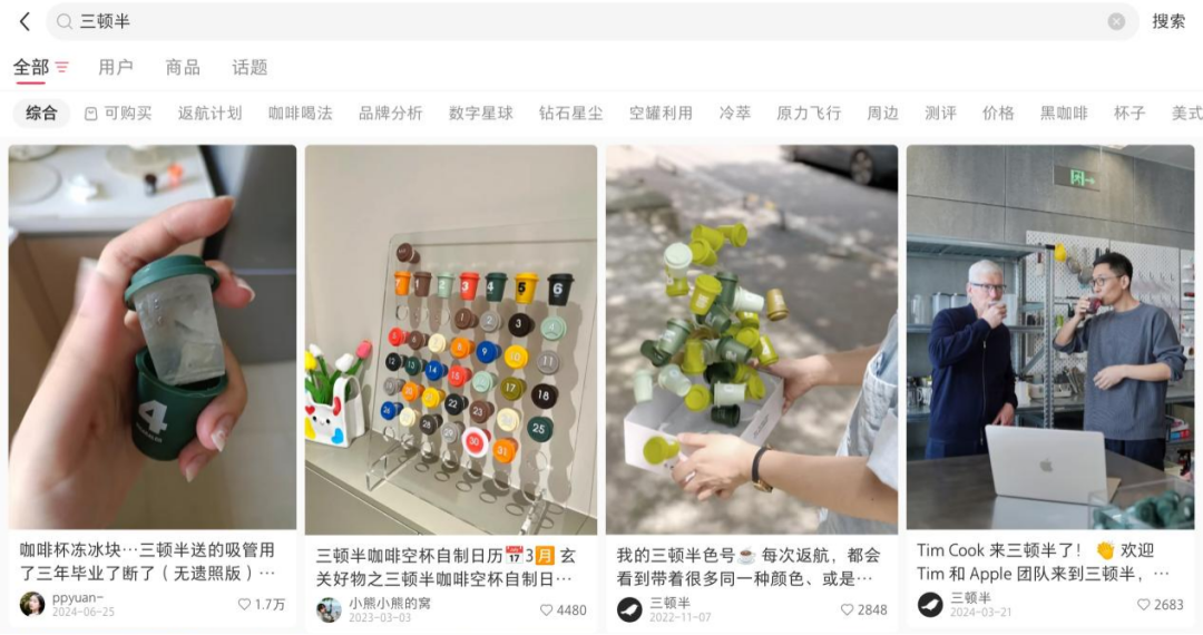 三頓半作為咖啡領域的創(chuàng)新先鋒,其憑借獨特的小罐咖啡形式,曾在小紅書上掀起了一股咖啡熱潮。眾多美食和飲料主播使用三頓半推出各種創(chuàng)意的咖啡沖泡教程和咖啡與美食搭配的內(nèi)容,如咖啡拿鐵、摩卡星冰樂等,為用戶展示了咖啡的無限可能性。消費者也積極響應,在小紅書上分享自己獨特的“三頓半空罐創(chuàng)意玩法”,將空罐制作成各種精美的手工飾品,展現(xiàn)了他們對生活的小巧思和對品牌的熱愛。此外,三頓半還精心策劃了豐富的營銷活動,例如“返航計劃”,該活動鼓勵用戶收集咖啡空罐,并前往指定地點兌換周邊產(chǎn)品或參與線下活動。這不僅有效提高了用戶的參與感,還極大地增強了品牌忠誠度。