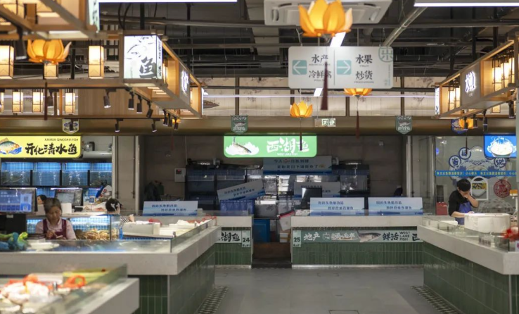 改造后的福明菜場(chǎng)對(duì)空間進(jìn)行了重新規(guī)劃,設(shè)置了蔬菜、水果、肉類、海鮮、禽蛋、豆制品、熟食等不同的功能區(qū)域。除了傳統(tǒng)的農(nóng)產(chǎn)品攤位外,福明菜場(chǎng)還引入了許多特色業(yè)態(tài)。如增加了鮮花店、烘焙坊、小吃店、便利店等,滿足了消費(fèi)者在購(gòu)物過程中的多樣化需求。同時(shí),還設(shè)置了一些品牌農(nóng)產(chǎn)品專賣店,提供高品質(zhì)的特色農(nóng)產(chǎn)品,提升了菜場(chǎng)的檔次。